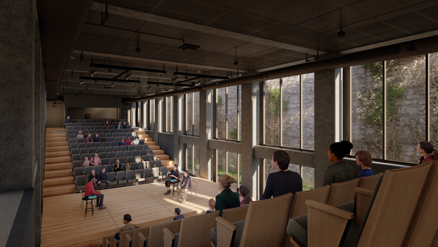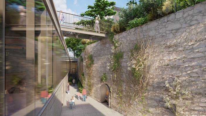 Outra intervenção na estrutura atual vai resultar em melhores condições de iluminação e ventilação naturais, pois consiste em ‘afastar’ o prédio de uma grande muralha de pedra que existe no local.